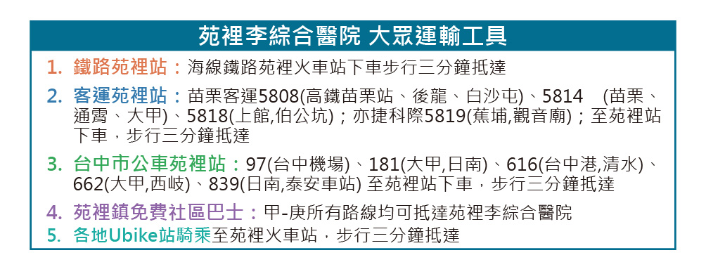 交通指南>交通搭乘指引>苑裡李綜合院區